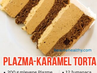 Plazma-Karamel Torta Ova torta kombinuje sočne kore od plazme i kakaa sa bogatim karamel i vanila kremom. Sastojci: * Za Krem: * 12 žumanaca * 200 g šećera * 9 dl mleka * 3 […]